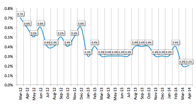 Receivables over 30 days decreased to 2.0 percent from 2.1 percent the previous month, and were flat with the same period in 2013. Charge-offs were unchanged from the previous month at an all-time low of 0.2 percent.